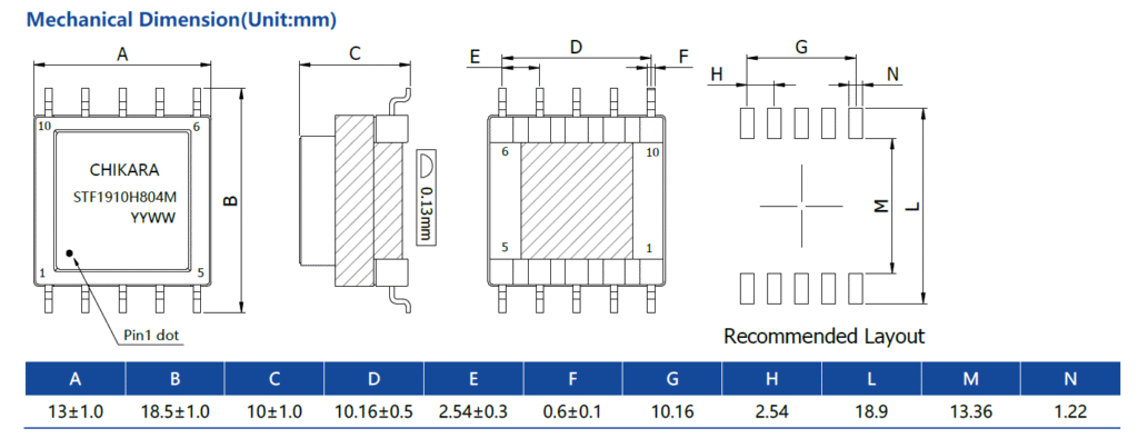 STF1910H804MTurns Ration(1-3):(3-5):(10-8):(8-6)1:1:1:120KHz,0.1VChroma3302